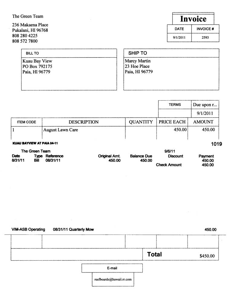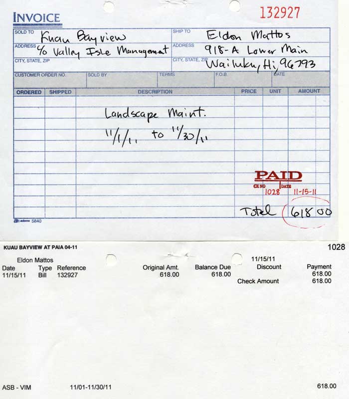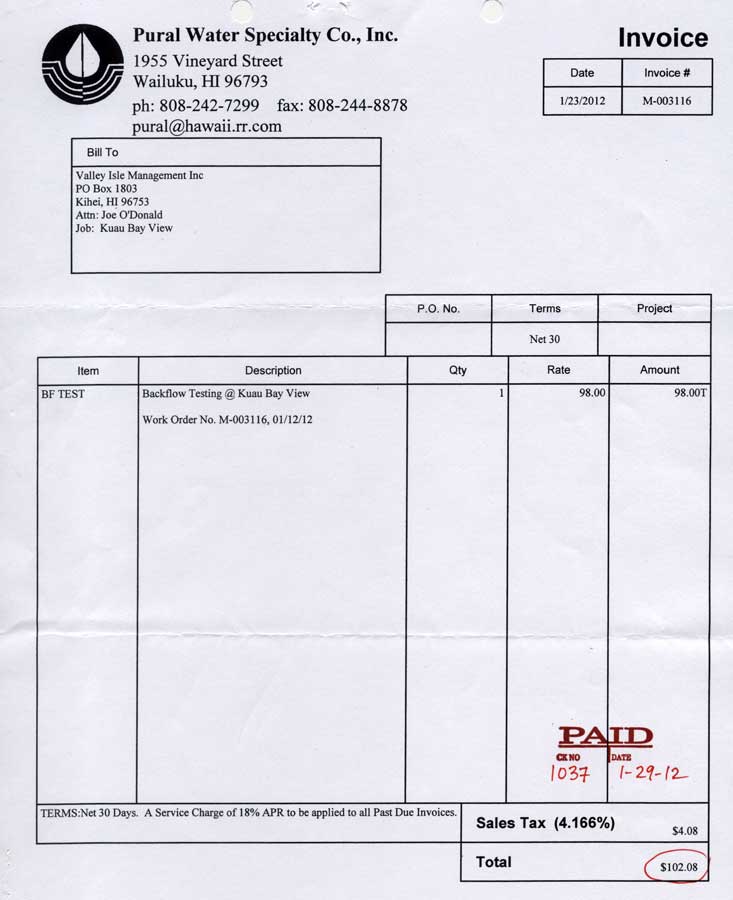 - 2012 Ho'olawa Farms Invoices $5,219.61